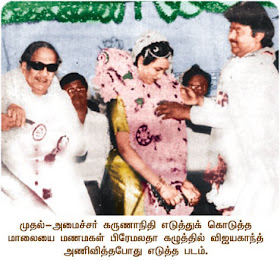 திருநாவுக்கரசு, ஜெயலலிதா, ஆர்.எம்.வீ. கேட்டும் தராத எம்.ஜி.ஆரின் பிரசார வேனை விஜயகாந்த்துக்குக் கொடுத்திருக்கிறார் ஜானகி எம்.ஜி.ஆர் அதோடு, எம்.ஜி.ஆர். ஜானகி எம்.ஜி.ஆர். எனப் பெயர் பொறித்த மோதிரங்களையும் தம்பதியினருக்கு வழங்கி மகிழ்ந்திருக்கிறார் திருமதி ஜானகி !